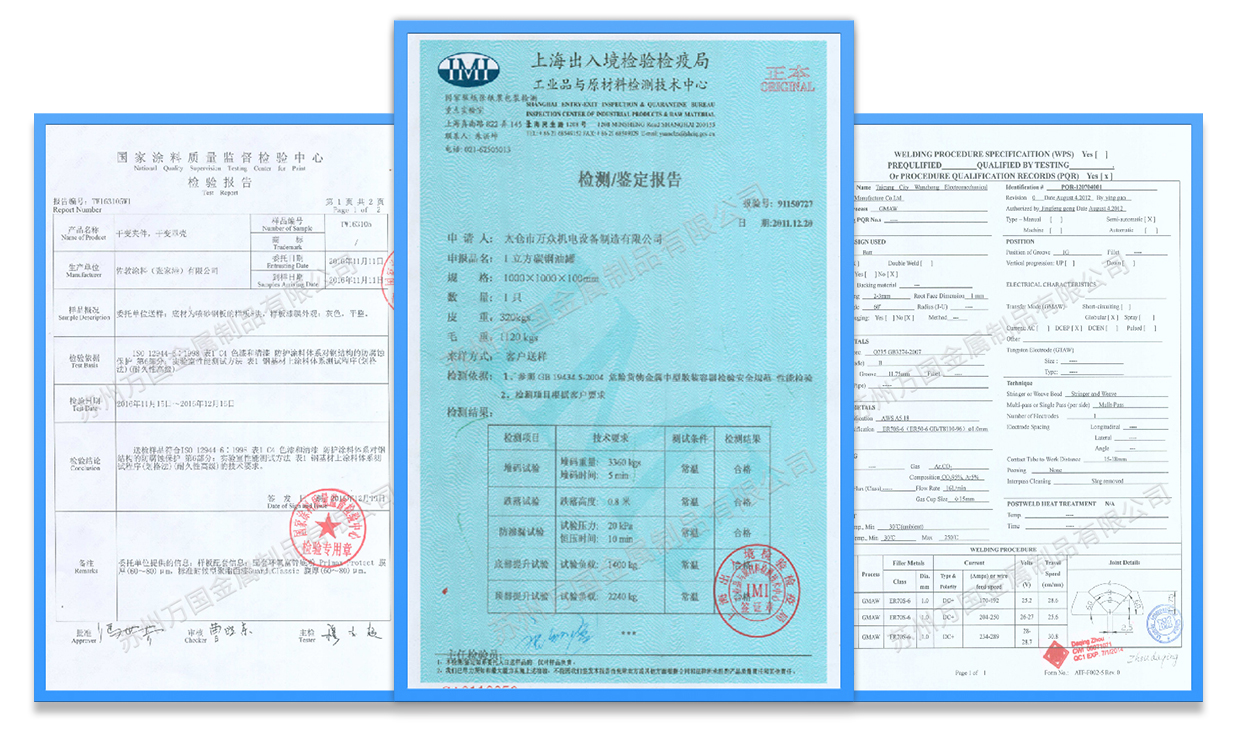 我們嚴格地運行生產過程的質量管控和成品檢驗,并擁有WPS焊接工藝評定、C4-H防腐認證、罐體鑒定檢測報告等,確保給客戶提供高品質、高性能的產品